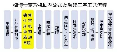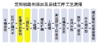 目前,市場(chǎng)上定形機(jī)助劑添加及后續(xù)工序的主要工藝流程一般如下圖所示。