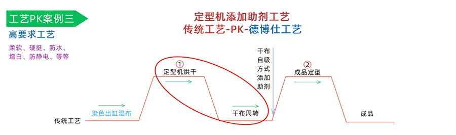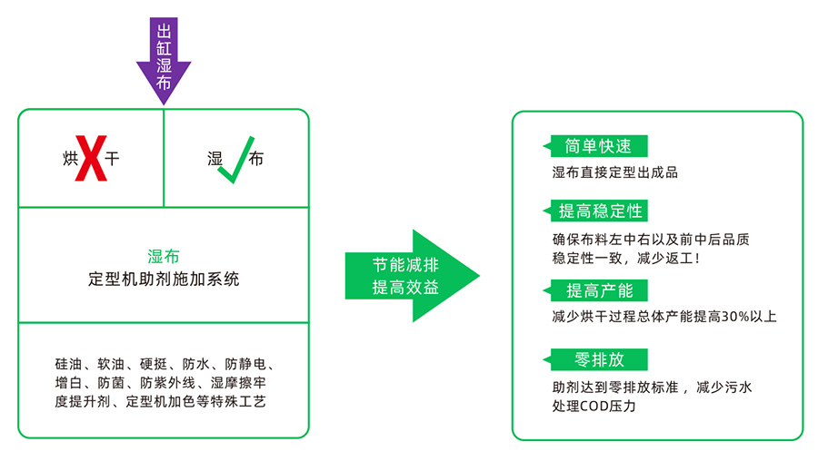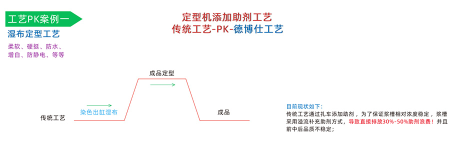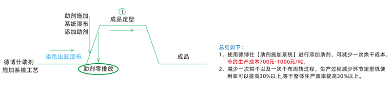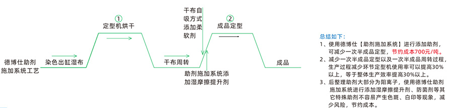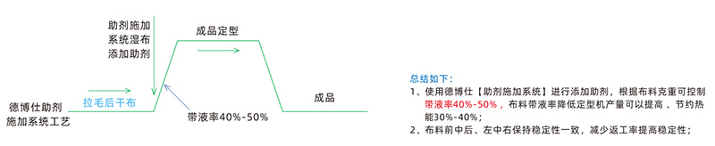 德博仕-定型機(jī)助劑施加系統(tǒng)與定型機(jī)組合工作流程圖