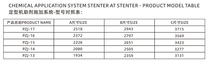 本產(chǎn)品主要匹配:定型機(jī)、預(yù)縮機(jī)、烘干機(jī)、壓光機(jī)、等其他特殊工藝機(jī)型。